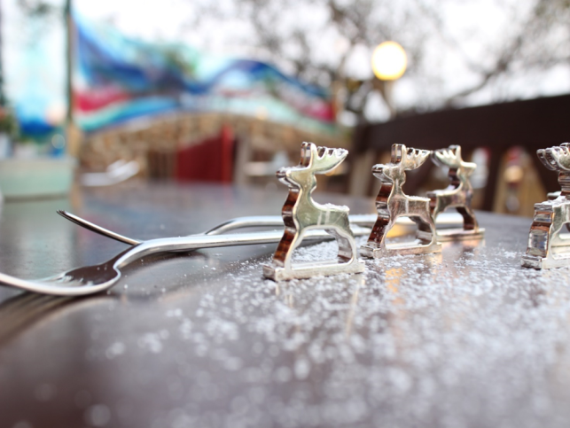 Wenn's draußen kalt ist, drinnen die Weihnachtsplätzchen mit dem Glühwein um